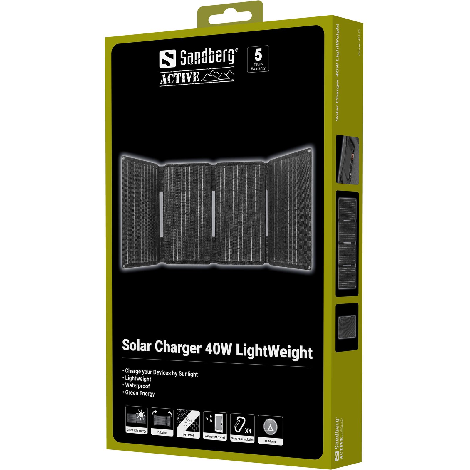 Los paneles altamente eficientes generan 40W, permitiéndote cargar tu smartphone, tablet o power bank directamente desde la caja de control del panel.