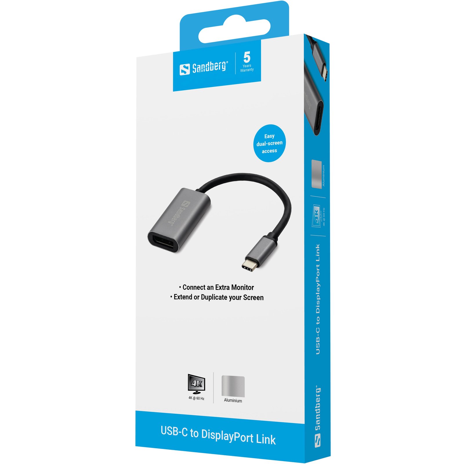 Con el Sandberg USB-C to DisplayPort Link, puedes usar tu puerto USB-C para conectar un segundo monitor, una televisión o un proyector al ordenador.